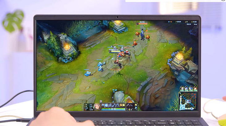 Dell Inspiron được cung cấp sức mạnh hiệu năng từ bộ xử lý Intel Core i3 1115G4 cùng card đồ hoạ Intel UHD Graphics. Cá nhân người viết cảm nhận laptop chạy tốt các ứng dụng Office kể cả chơi tựa game nhẹ như Liên Minh Huyền Thoại. Máy xử lý mượt trung bình khoảng 60 FPS. Con số tạm ổn khi nhu cầu chơi game chỉ là thứ yếu.