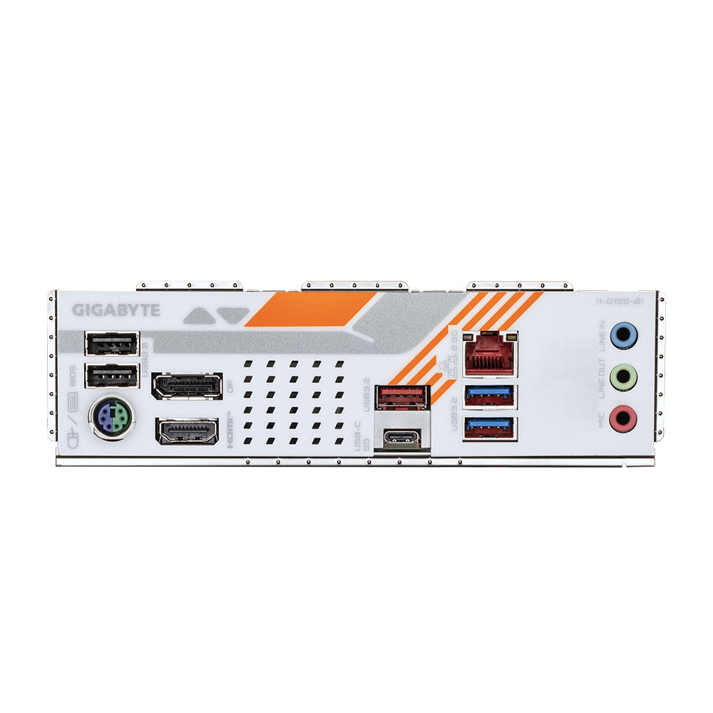 Hệ thống cổng I/O phía sau bao gồm HDMI và DisplayPort phục vụ xuất hình khi sử dụng CPU có đồ họa tích hợp, USB Type-C hỗ trợ USB 3.2 Gen 1, nhiều cổng USB 3.2 và USB 2.0 đáp ứng đầy đủ nhu cầu kết nối thiết bị ngoại vi. Cổng RJ-45, các jack âm thanh và đầu nối anten giúp hoàn thiện trải nghiệm sử dụng.