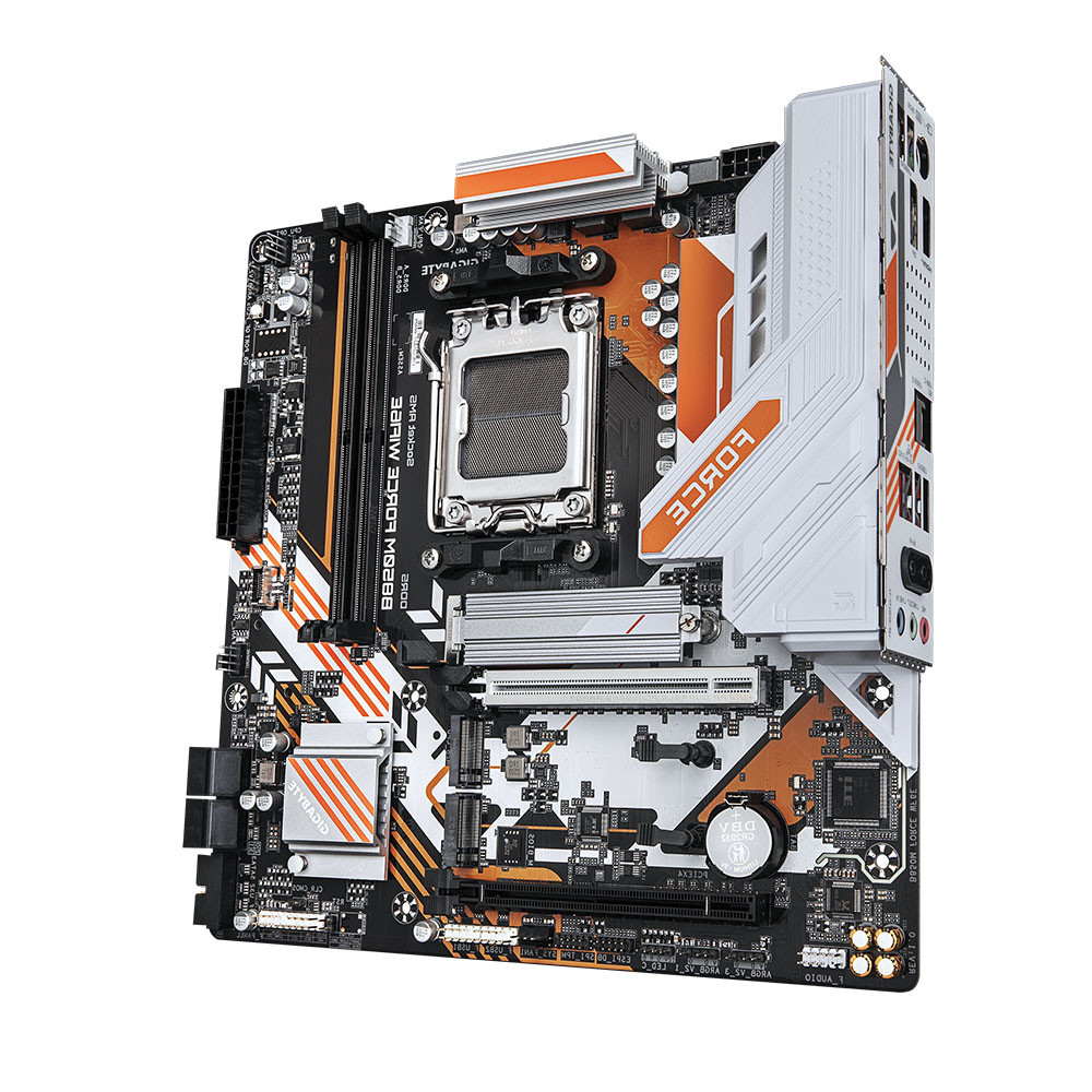 Bo mạch chủ sử dụng socket AMD AM5, tương thích với các dòng Ryzen thế hệ mới. Với 2 khe RAM DDR5 hỗ trợ tối đa 128GB, Gigabyte B850M Force Wifi 6E DDR5 tập trung vào hiệu năng và độ ổn định khi chạy bộ nhớ xung cao.
