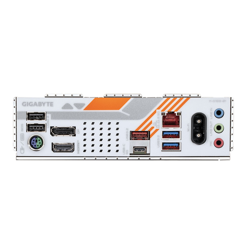 Hệ thống cổng I/O phía sau bao gồm HDMI và DisplayPort phục vụ xuất hình khi sử dụng CPU có đồ họa tích hợp, USB Type-C hỗ trợ USB 3.2 Gen 1, nhiều cổng USB 3.2 và USB 2.0 đáp ứng đầy đủ nhu cầu kết nối thiết bị ngoại vi. Cổng RJ-45, các jack âm thanh và đầu nối anten giúp hoàn thiện trải nghiệm sử dụng.