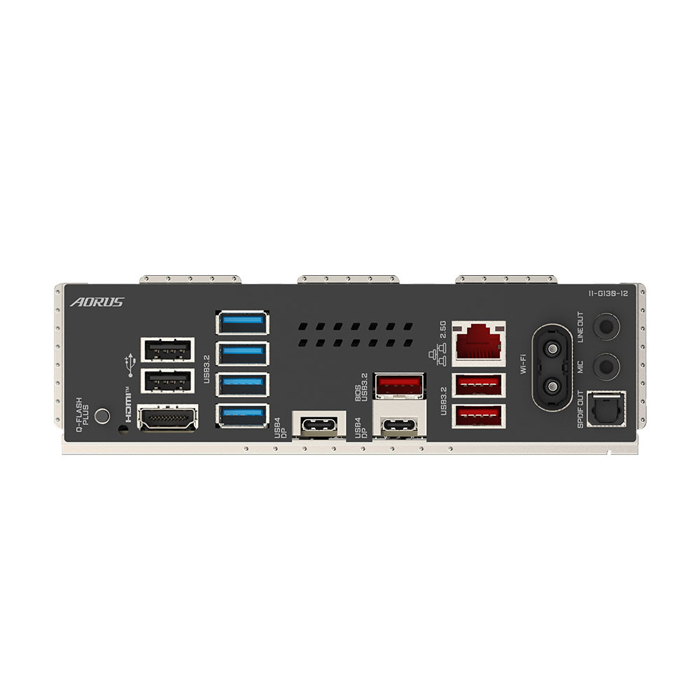 1 x nút Q-Flash Plus 2 x cổng USB 2.0/1.1 1 x cổng HDMI (Lưu ý) 4 x cổng USB 3.2 Gen 1 2 x cổng USB4® USB Type-C® (DisplayPort (Lưu ý)) 3 x cổng USB 3.2 Gen 2 Type-A (màu đỏ) 1 x cổng RJ-45 2 x đầu nối ăng ten (2T2R) 1 x đầu nối quang S/PDIF Out 2 x giắc cắm âm thanh |