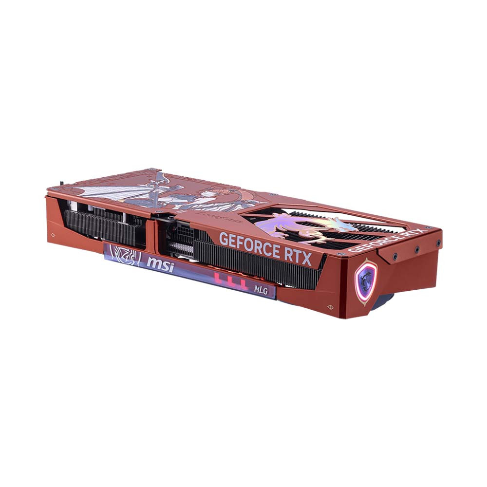 MSI trang bị tấm giáp lưng kim loại đỏ anode hóa với hoa văn khắc tinh xảo. Không chỉ tăng độ bền và bảo vệ linh kiện, phần giáp này còn mang lại vẻ ngoài độc đáo, biến chiếc GPU thành một món đồ sưu tầm đậm chất gaming.