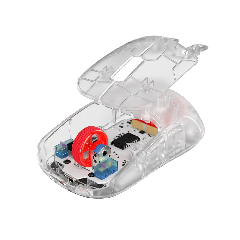 Điểm nổi bật nhất của phiên bản Gaming Gear này nằm ở lớp vỏ “Super Clear” trong suốt, giúp lộ toàn bộ cấu trúc bên trong chuột. Đây là phong cách thiết kế hiếm gặp trong phân khúc gaming gear, tạo cảm giác rất “tech” và khác biệt hoàn toàn so với các mẫu chuột truyền thống.