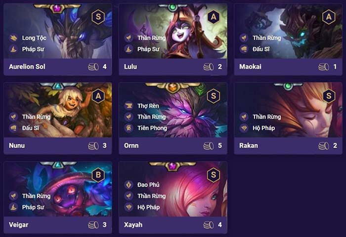 - Dùng Maokai, Lulu, Rakan, Xayah để kích hoạt Thần Rừng sớm.