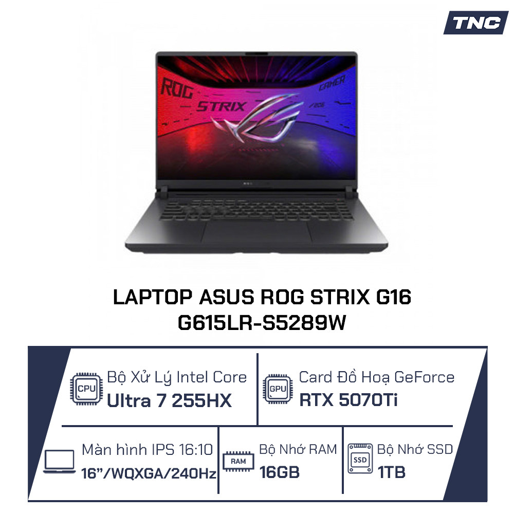 Laptop Asus ROG Strix G16 G615LR-S5289W là cỗ máy gaming hiệu năng cực cao, xứng đáng cho những ai cần một thiết bị vừa mạnh mẽ, vừa bền bỉ để chinh phục mọi thử thách. Với màn hình 240Hz siêu mượt, hiệu năng mạnh mẽ từ Core Ultra 7 và RTX 5070Ti, đây là lựa chọn hoàn hảo cho game thủ và nhà sáng tạo chuyên nghiệp. Bạn có thể tìm mua sản phẩm chính hãng tại TNC Store để tận hưởng trải nghiệm gaming đỉnh cao.