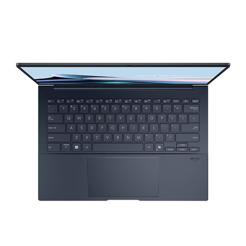 Với trọng lượng chỉ 1.28kg và độ mỏng 1.49 cm, Zenbook 14 là một trong những chiếc laptop mạnh mẽ nhất nhưng vẫn giữ được sự di động tối đa. Thiết kế màu Blue hiện đại, khung máy tinh tế và bàn phím có đèn nền Backlit mang đến sự sang trọng, tiện lợi khi làm việc trong mọi điều kiện ánh sáng. Camera FHD hỗ trợ Windows Hello bằng IR và có cửa che vật lý, tăng cường bảo mật.