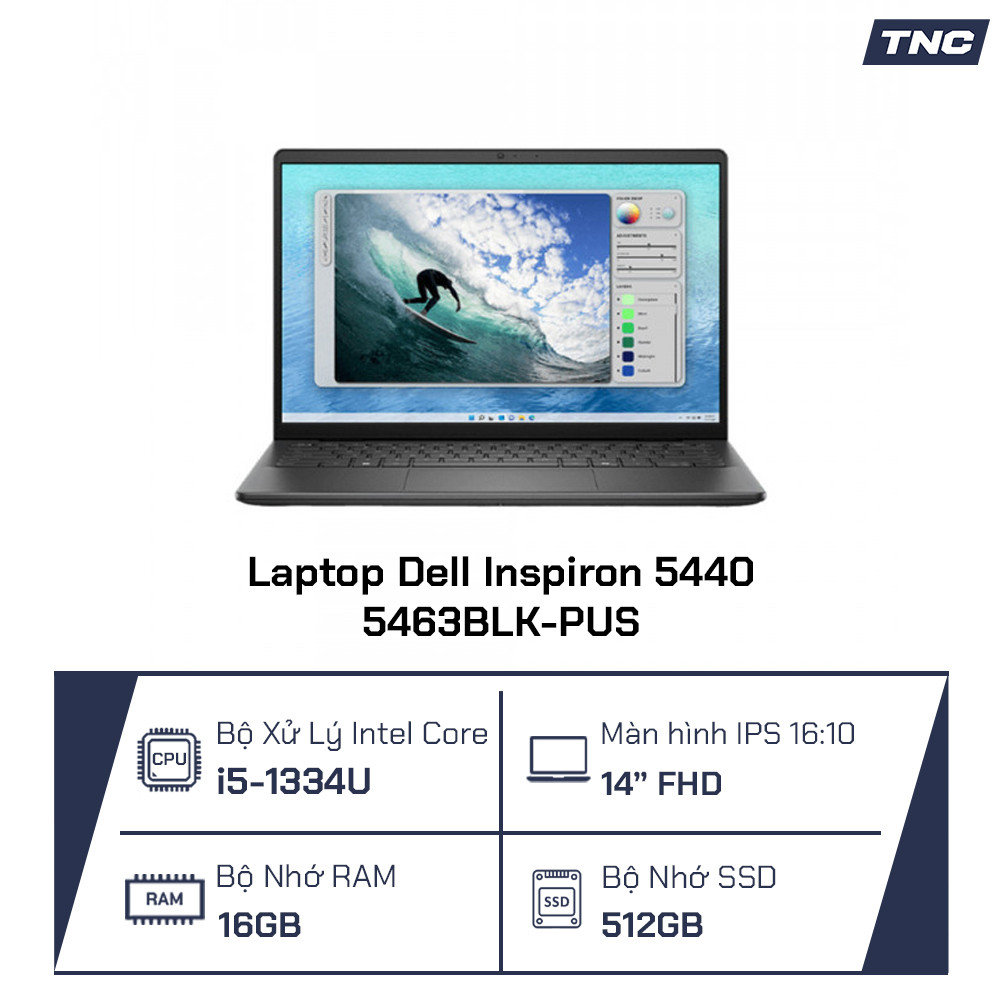 Dell Inspiron 5440 5463BLK-PUS là mẫu laptop văn phòng – học tập hoàn hảo với thiết kế gọn nhẹ, màn hình tối ưu hiển thị và hiệu năng ổn định. Nếu bạn cần một chiếc laptop bền bỉ, đẹp và đáp ứng tốt cả công việc lẫn giải trí cơ bản, hãy mua ngay Dell Inspiron 5440 chính hãng tại TNC Store để nhận giá tốt, bảo hành uy tín và dịch vụ tận tâm.