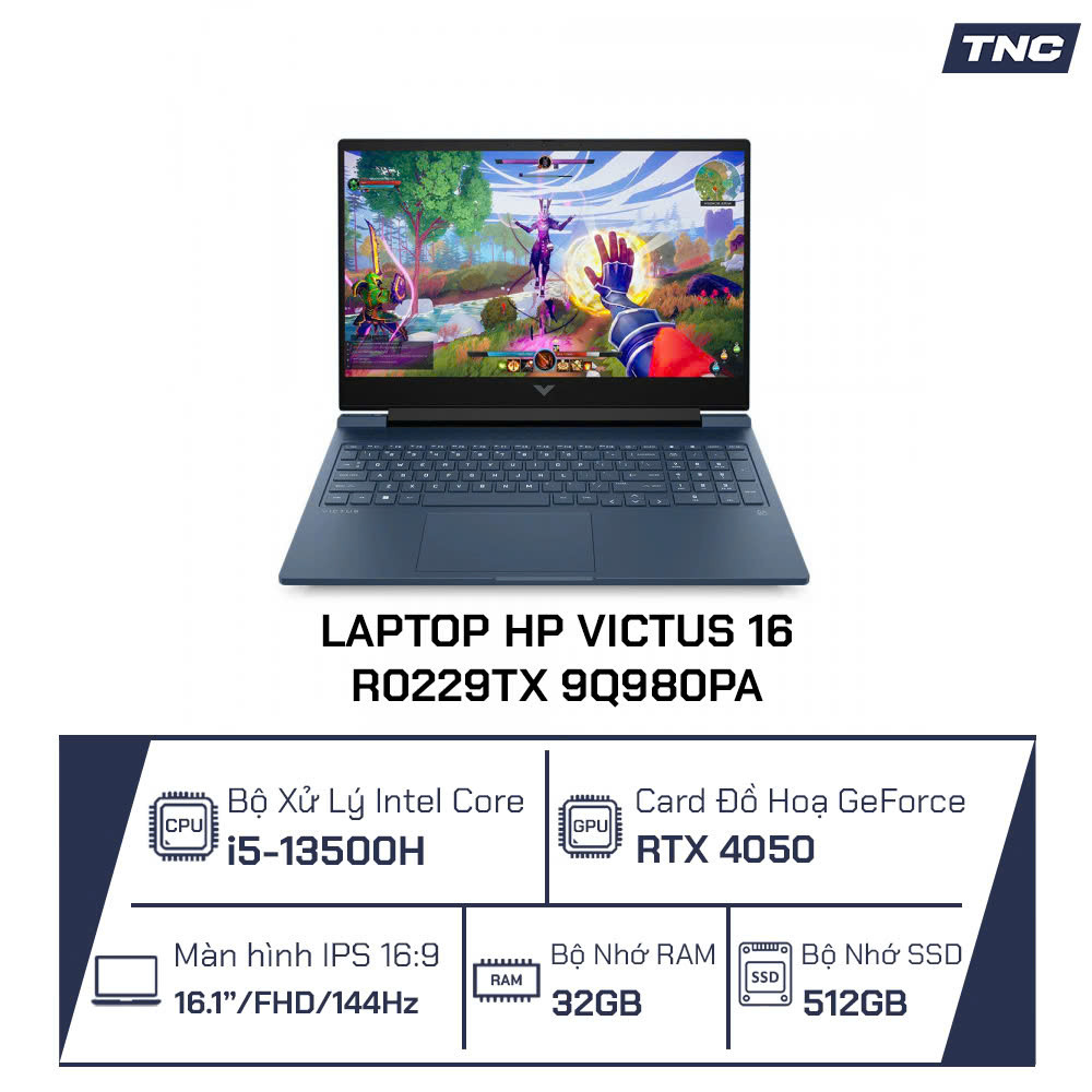 Laptop HP Victus 16-r0229TX 9Q980PA Core i5-13500H/ 32GB/ 512GB/ RTX 4050/ 16.1 Inch FHD/ 144Hz/ Win 11/ Xanh