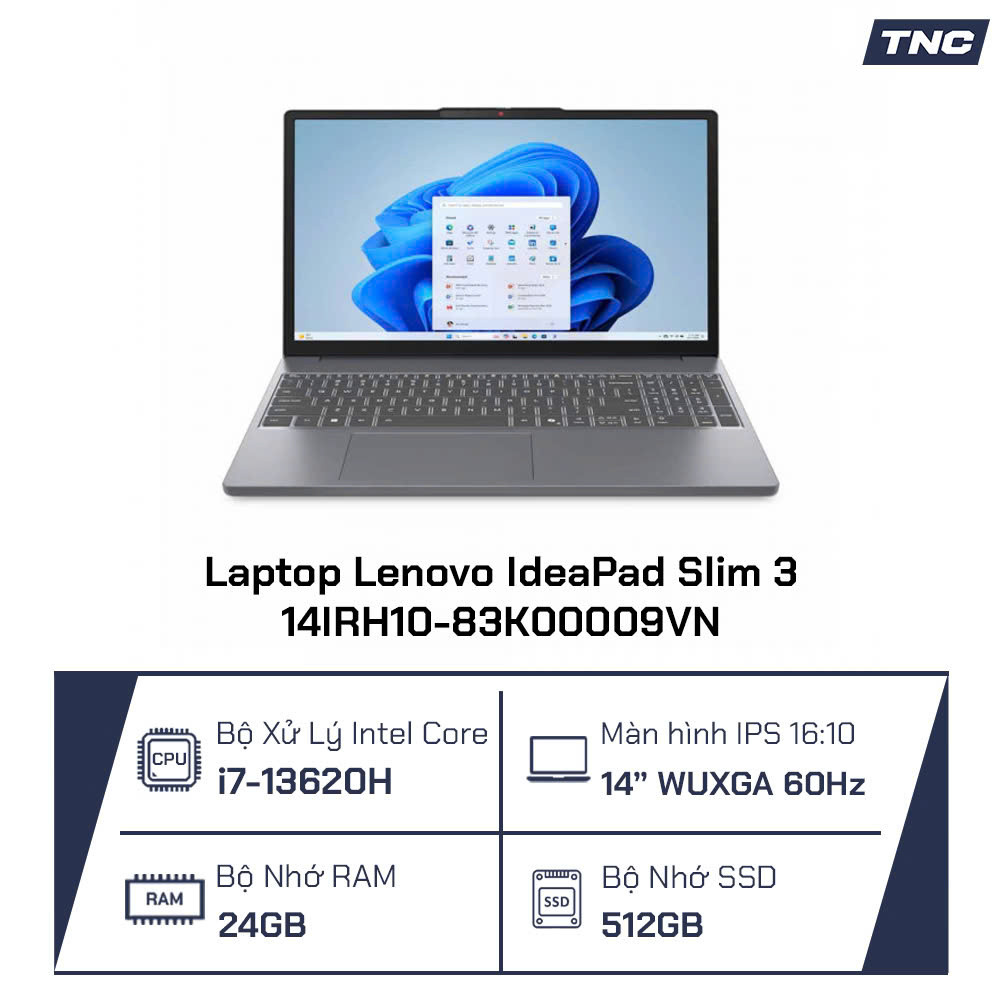 Laptop Lenovo IdeaPad Slim 3 14IRH10-83K00009VN Core i7-13620H/ 24GB/ 512GB/ 14 Inch WUXGA/ Win 11/ Xám