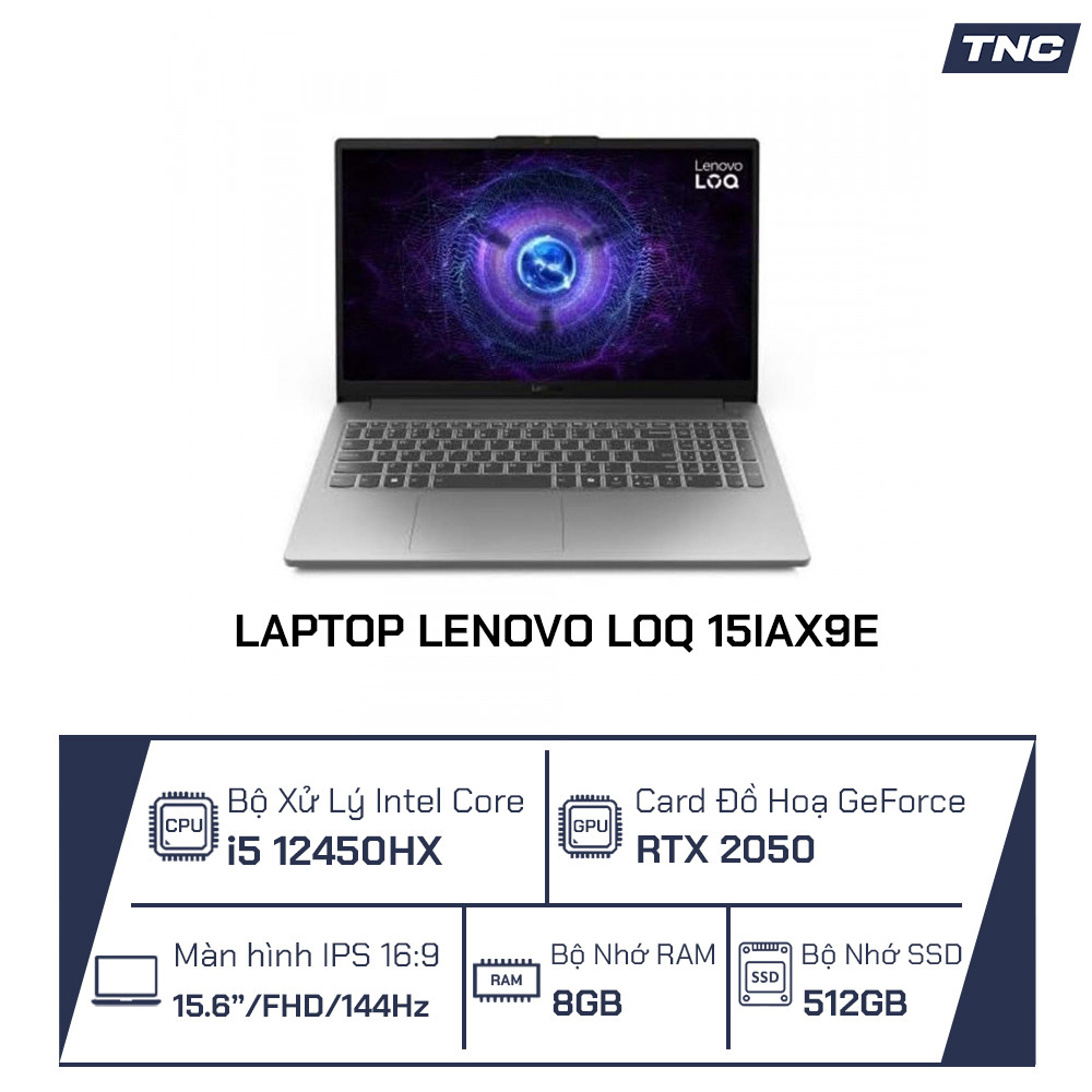 Laptop Lenovo LOQ 15IAX9E Intel Core i5 12450HX/ 8GB/ 512GB/ RTX 2050/ 15.6 Inch FHD/ Win 11/ Grey/ NK_83LK0001US