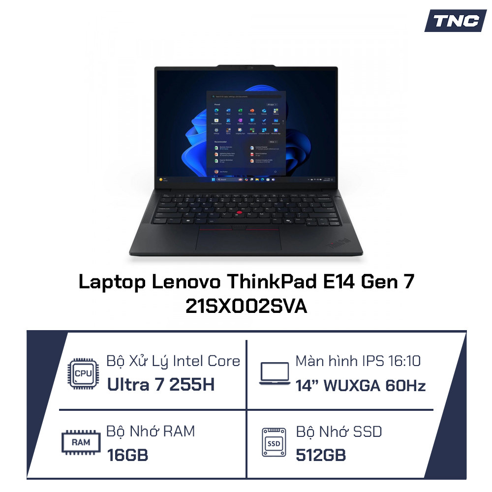 Nếu bạn đang tìm một chiếc laptop doanh nghiệp 14 inch gọn nhẹ, hiệu năng mạnh mẽ, độ bền cao và khả năng nâng cấp tốt, thì Lenovo ThinkPad E14 Gen 7 21SX002SVA là lựa chọn rất đáng cân nhắc. Lenovo ThinkPad E14 Gen 7 21SX002SVA hiện đã có mặt tại TNC Store với sản phẩm chính hãng, bảo hành đầy đủ và hỗ trợ tư vấn cấu hình phù hợp theo nhu cầu doanh nghiệp.