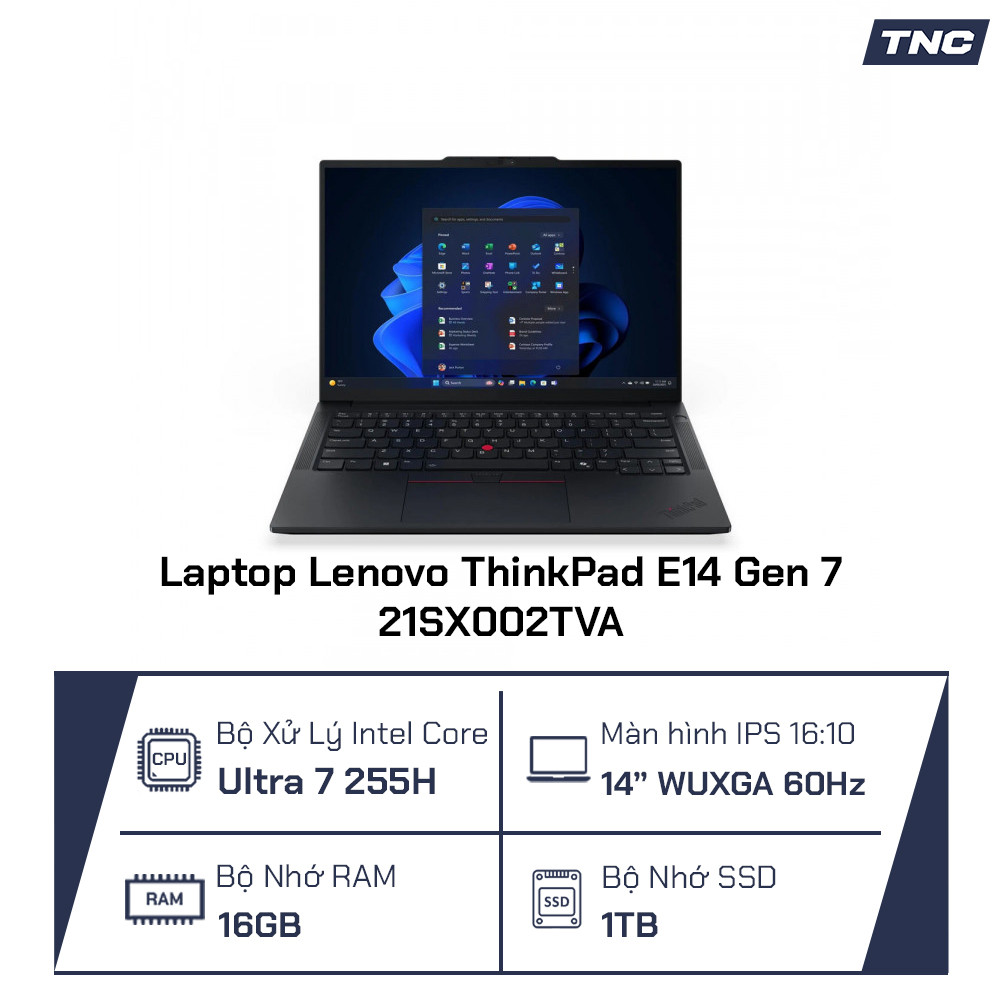 Nếu bạn đang tìm kiếm một chiếc laptop 14 inch gọn nhẹ, hiệu năng mạnh mẽ, độ bền cao và khả năng nâng cấp tốt cho công việc dài hạn, thì Lenovo ThinkPad E14 Gen 7 21SX002TVA là lựa chọn rất đáng đầu tư. Mua ngay Lenovo ThinkPad E14 Gen 7 chính hãng tại TNC Store để nhận mức giá ưu đãi, chế độ bảo hành uy tín và hỗ trợ kỹ thuật tận tâm.