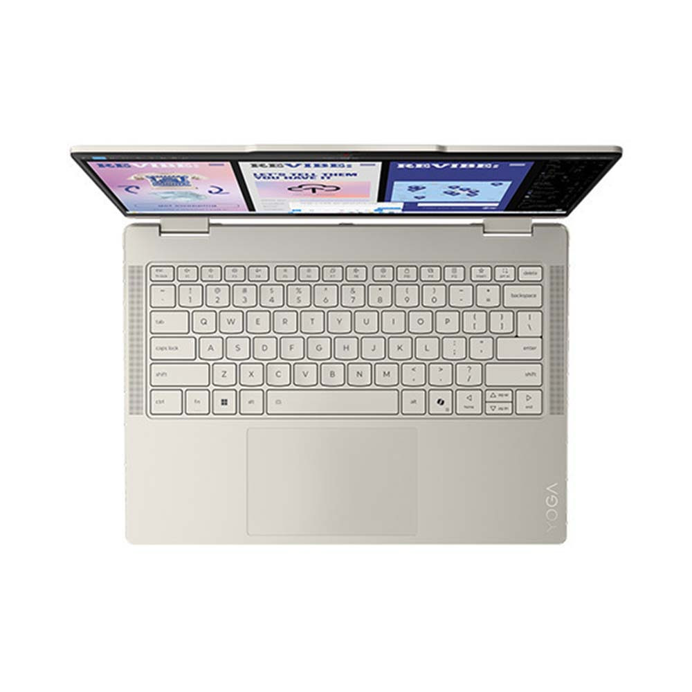 Mang trên mình màu Seashell sang trọng, Lenovo Yoga 7 có ngoại hình hiện đại, mỏng nhẹ với trọng lượng chỉ 1.38kg. Nhờ bản lề gập 360 độ, chiếc laptop này có thể linh hoạt biến đổi giữa nhiều chế độ sử dụng: laptop, tablet, tent hoặc stand, phù hợp với mọi bối cảnh công việc và giải trí.