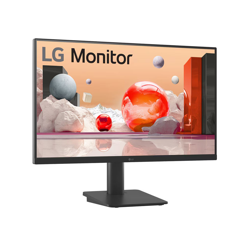 Màn hình giữ phong cách tối giản quen thuộc của LG: viền mỏng, tông đen hiện đại và thân máy tinh gọn. Với kích thước tổng thể 612 × 492.1 × 219.4 mm, sản phẩm phù hợp từ bàn làm việc nhỏ đến các setup làm việc chuyên nghiệp.