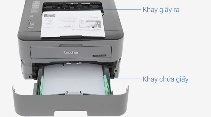 - Bước 2: Cho giấy vào khay chứa giấy bên dưới, mặt trên là khay giấy ra, được thiết kế luôn sẵn sàng nhận giấy đã in.