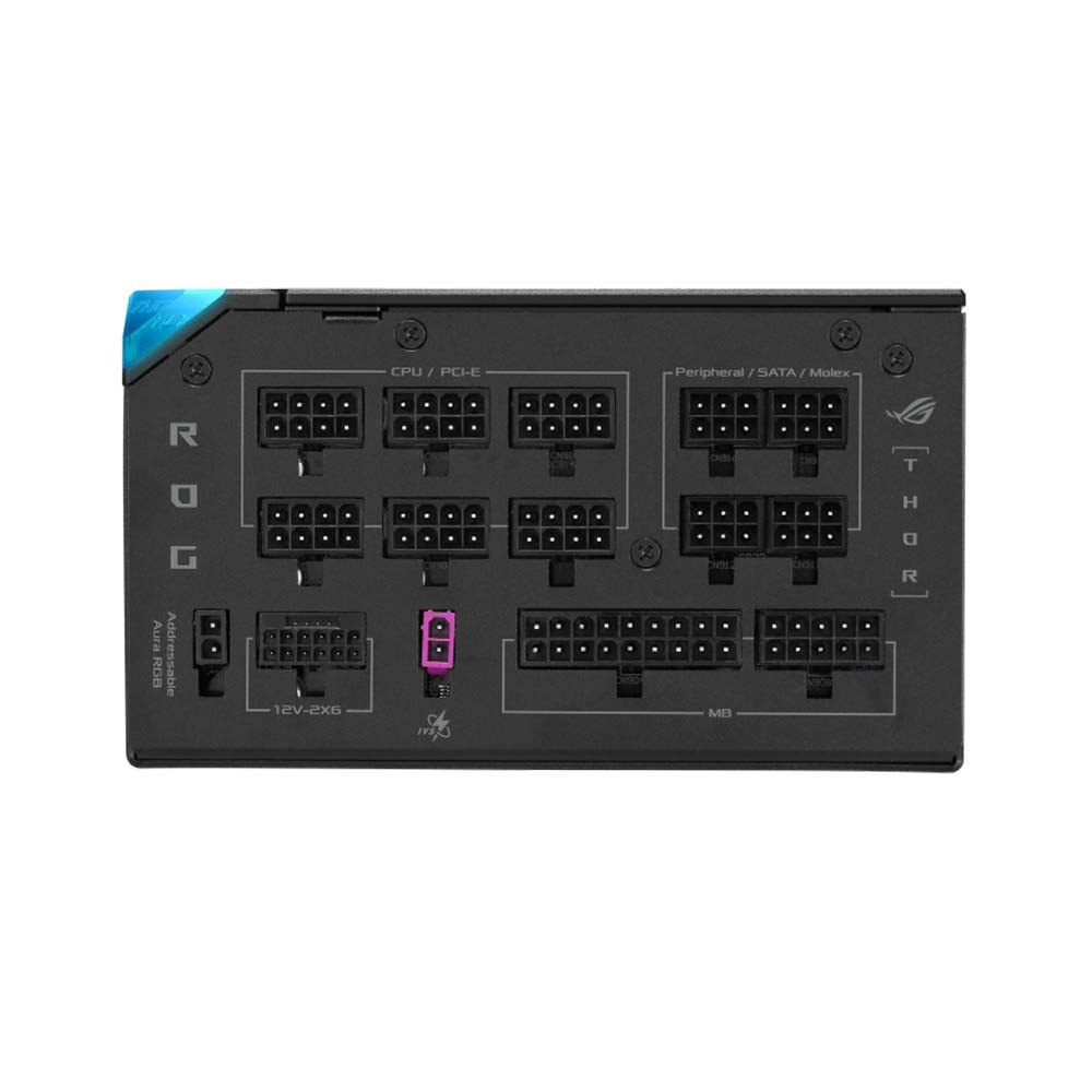 ASUS ROG Thor tương thích với tiêu chuẩn ATX 3.1, hỗ trợ cáp PCIe 16-pin 600W, đảm bảo cấp nguồn đầy đủ cho các card đồ họa RTX 4000/5000 series.