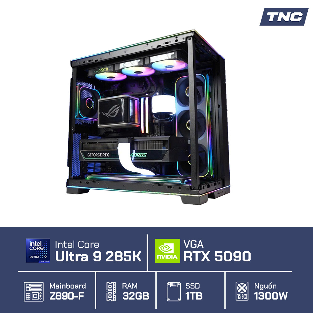 - Hiệu năng vô đối: CPU Ultra 9 285K kết hợp RTX 5090 – cặp đôi mạnh nhất hiện nay.