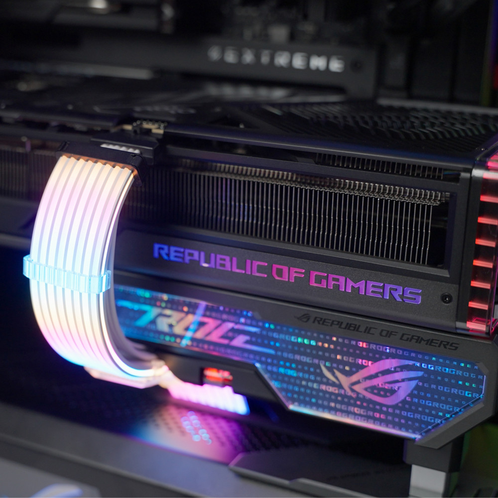 Khoác lên một thiết kế cực kì bắt mắt với tông màu trắng chủ đạo, ASUS ROG Strix GeForce RTX 4090 OC White Edition 24GB biến mình thành một “Elsa” đầy trong trắng và xinh đẹp trong những dàn PC cao cấp.
