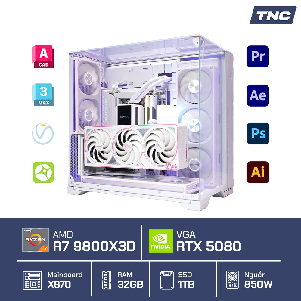 Với hiệu năng cực khủng, thiết kế đẹp mắt và độ ổn định cao, PC Đồ Họa Render 3D - Ryzen 7 9800X3D/ 32GB/ RTX 5080 là lựa chọn hoàn hảo cho những ai muốn tối ưu hiệu suất làm việc và sáng tạo không giới hạn. Hãy đến TNC Store để trải nghiệm, build cấu hình phù hợp và nhận ngay chính sách bảo hành – hậu mãi tốt nhất dành riêng cho dân đồ họa chuyên nghiệp!