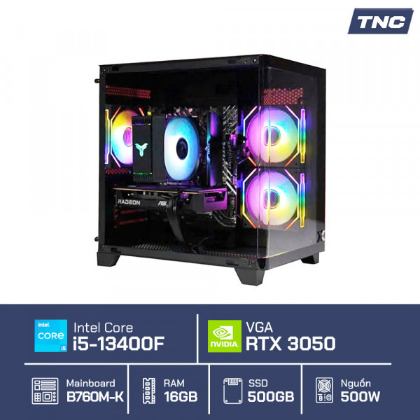 Trái tim của Glacier i3050 chính là CPU Intel Core i5-13400F với 10 nhân 16 luồng, tốc độ tối đa 4.6GHz, mang lại hiệu suất mạnh mẽ cho cả chơi game và công việc đa nhiệm. Kết hợp với card đồ họa RTX 3050 6GB, bộ máy đáp ứng tốt các tựa game eSports phổ biến như Valorant, CS2, LOL, cũng như có thể chiến game AAA ở mức thiết lập vừa phải. Đây là cấu hình lý tưởng cho người mới bước vào thế giới PC gaming nhưng vẫn muốn một trải nghiệm ổn định.