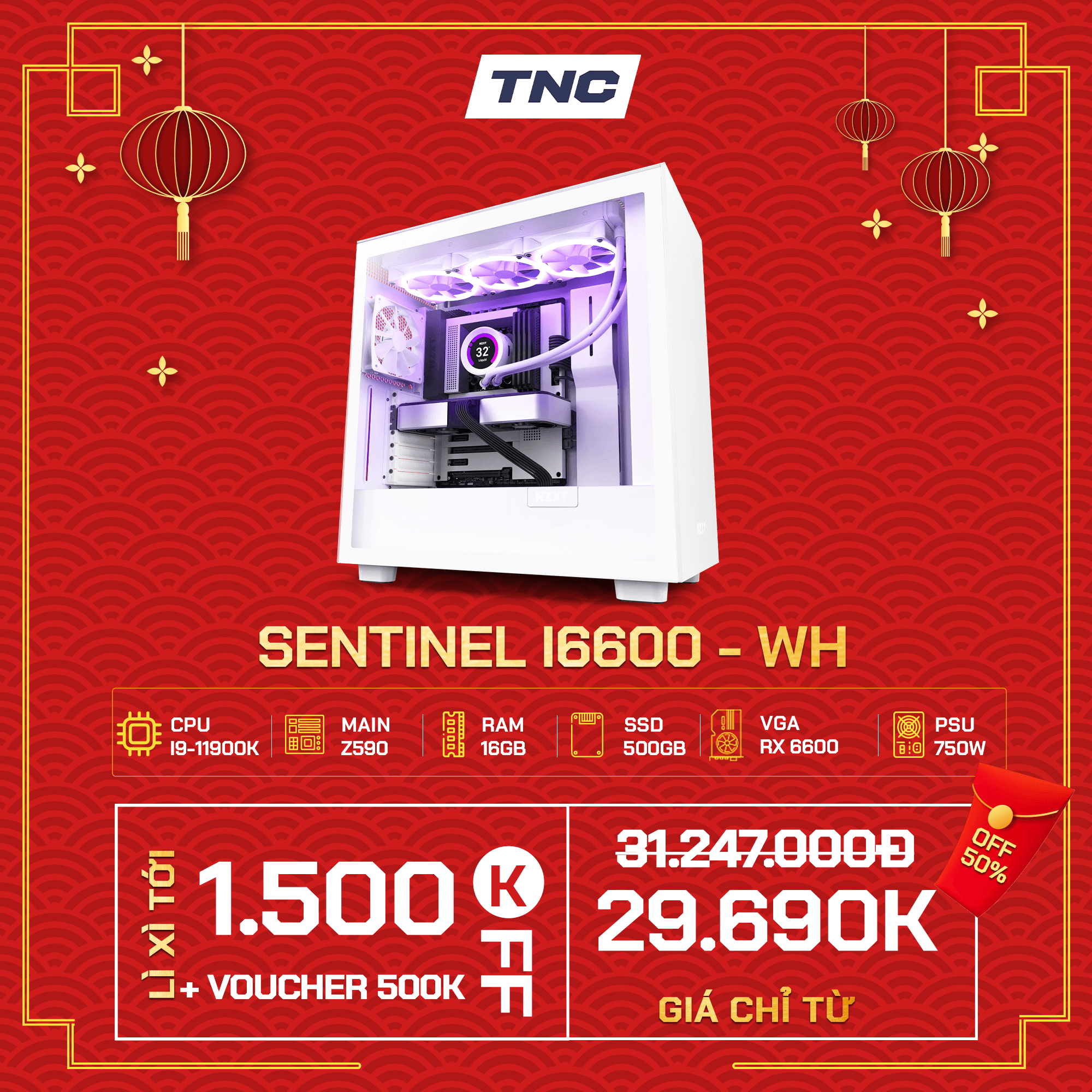 Nếu như đang mong muốn sở hữu riêng cho mình bộ PC vừa đẹp, vừa rẻ mà hiệu năng có thể chiến được đa số những tựa game phổ biến vào thời điểm hiện tại thì PC Gaming - Sentinel I6600 - WH là 1 sự lựa chọn khá tốt dành cho anh em Gamers. Chúng ta không chỉ có ở đây chiếc Card RTX 6600 quốc dân mà còn những linh kiện bên trong đó thuộc top những linh kiện hàng đầu với giá cực kì ưu đãi. Hãy cùng TNC điểm qua hiệu năng và thông số của từng linh kiện đó nhé.