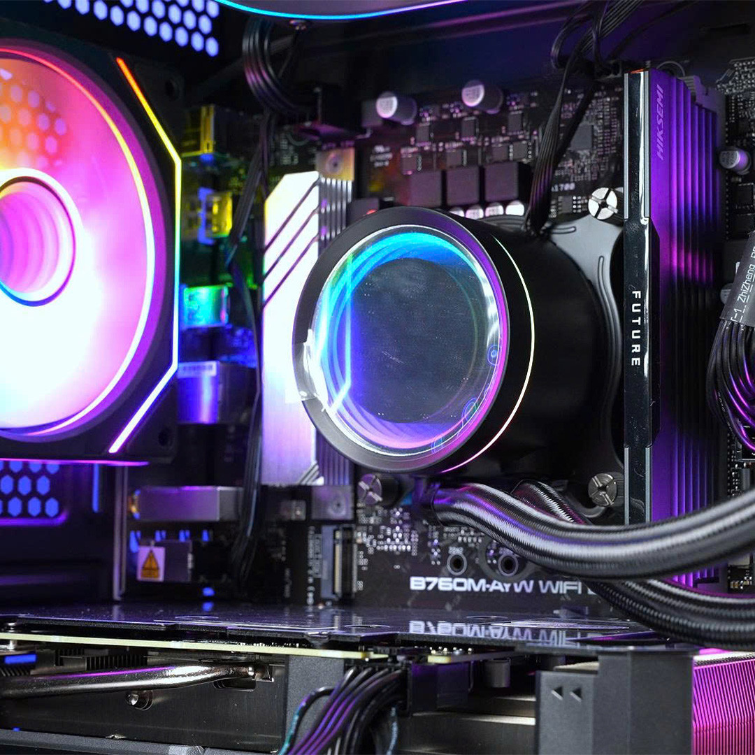 Điểm sáng của cấu hình Sniper A4060Ti – BL nằm ở bo mạch chủ Asus B760M-AYW WIFI D4, vốn được đánh giá cao nhờ độ bền và khả năng ổn định điện năng. Thiết kế VRM chắc chắn giúp CPU Intel Core i5-14400F đạt hiệu suất tối đa khi xử lý các tác vụ nặng hoặc chạy nhiều ứng dụng cùng lúc.