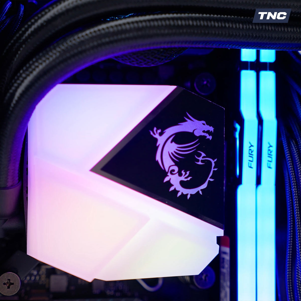 Dòng sản phẩm tản nhiệt nước MAG CORELIQUID C240 sở hữu block vớt nhiệt với bề mặt lớn được phủ toàn bộ bằng đèn ARGB chắc chắn làm trái tim ấn tượng trong dàn máy của bạn. Block nhiệt được chia ra làm bốn khu vực được cắt vát kim cương riêng biệt, với ba khu vực bề mặt hoàn toàn rực sáng đèn, trong khi khu vực cuối cùng sở hữu logo rồng của MSI.
