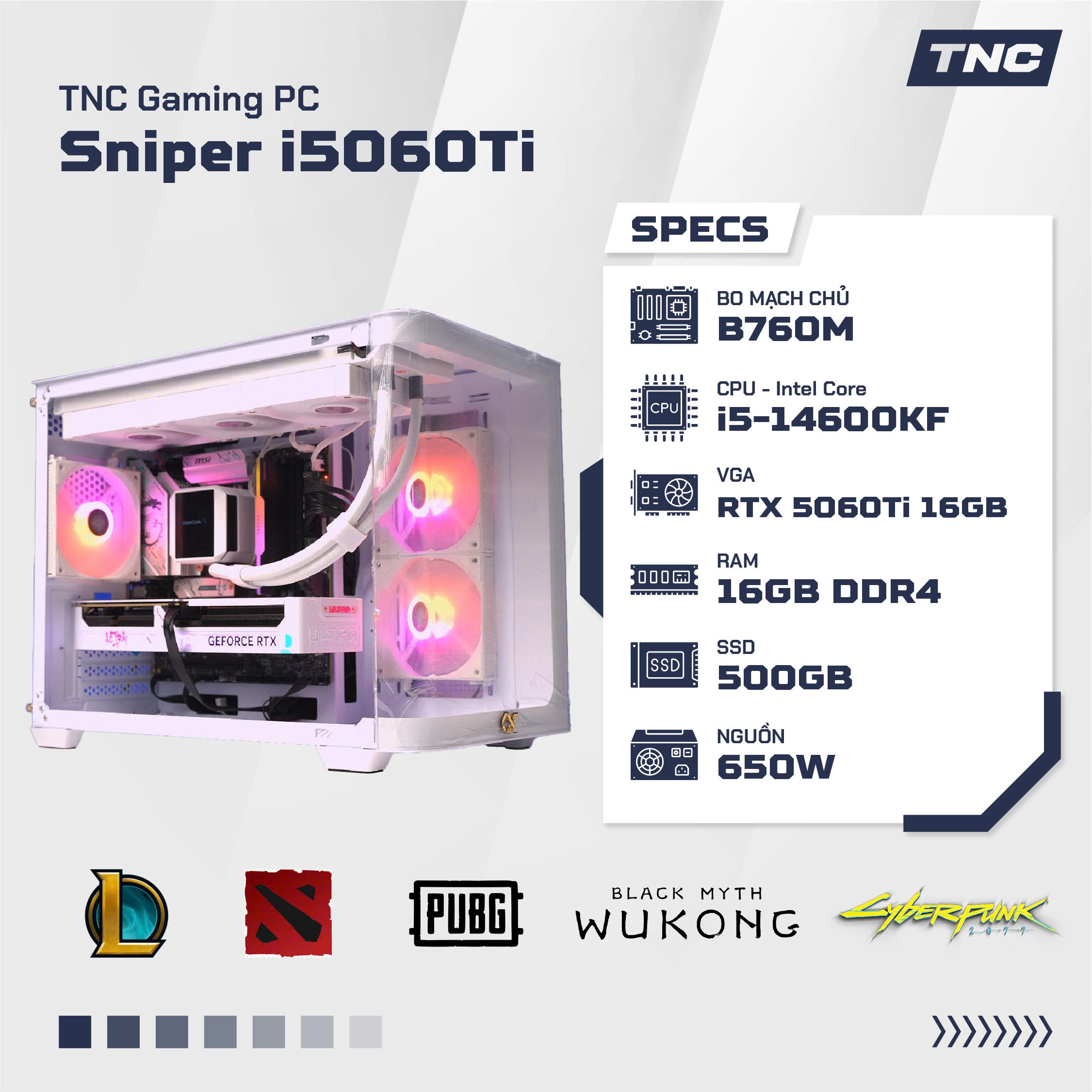 Nếu bạn đang tìm một bộ PC tối ưu hiệu năng – giá trị – thẩm mỹ thì Sniper i5060Ti chính là lựa chọn hoàn hảo. Hãy đến TNC Store để trải nghiệm trực tiếp, nhận tư vấn chi tiết và hưởng mức giá tốt nhất dành cho game thủ.