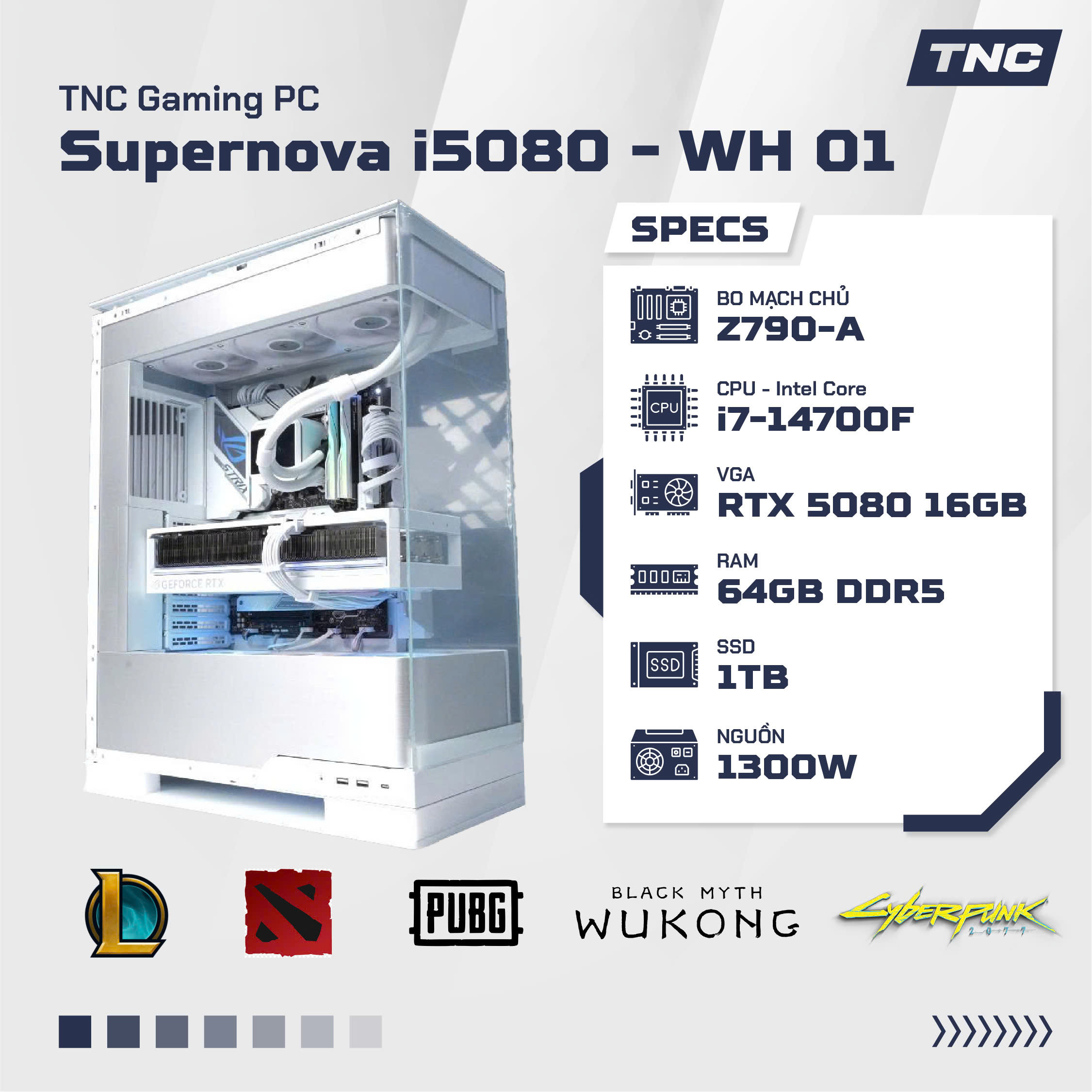 PC Gaming Supernova i5080 – WH 01 là lựa chọn hoàn hảo cho game thủ cao cấp và người dùng sáng tạo nội dung cần một bộ máy vừa mạnh mẽ, bền bỉ, vừa có ngoại hình tinh tế, đồng bộ màu trắng. Cấu hình này không chỉ đáp ứng tốt nhu cầu chơi game nặng mà còn dễ dàng xử lý các tác vụ đa nhiệm, livestream hay dựng video chuyên sâu. Nếu bạn đang tìm kiếm một chiếc gaming PC cao cấp hoàn chỉnh, sẵn sàng chiến game ở độ phân giải cao, hãy cân nhắc ngay sản phẩm này tại TNC Store – nơi cung cấp cấu hình chất lượng với dịch vụ hậu mãi uy tín.
