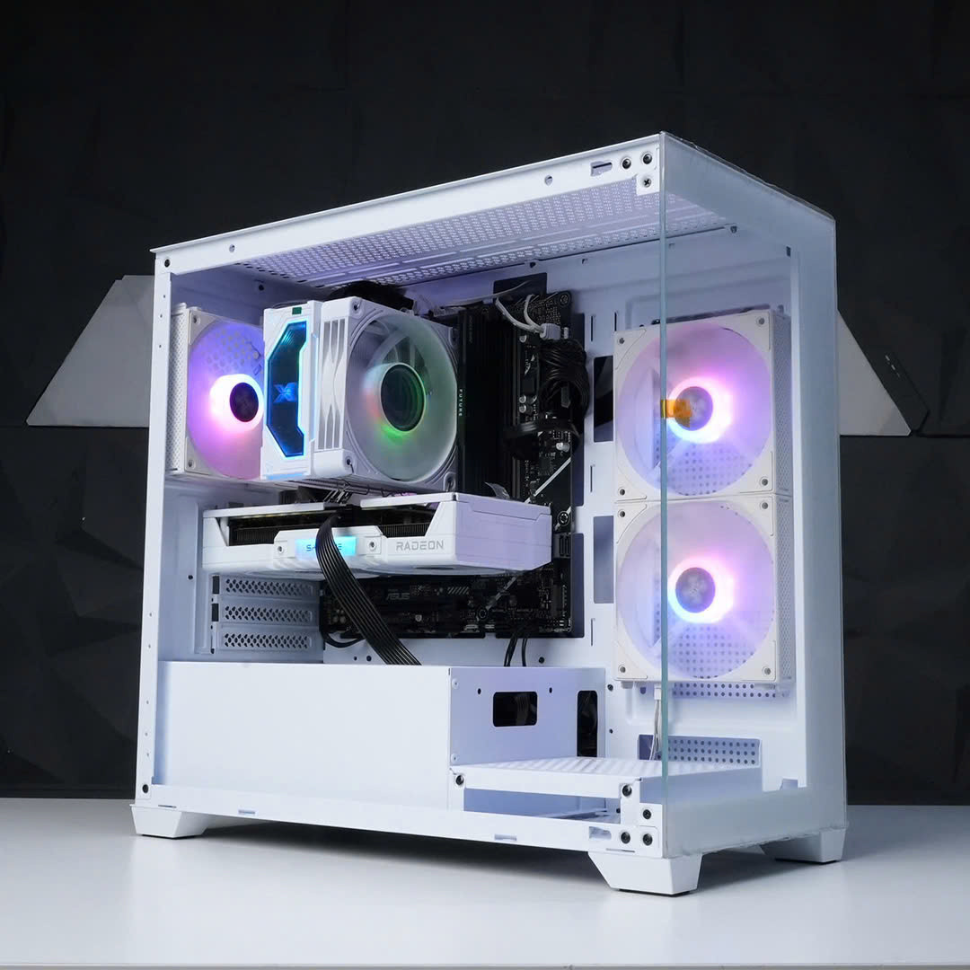 PC được hoàn thiện với vỏ case Aigo C218M M-ATX White mang phong cách hiện đại, dễ phối góc setup. Hệ thống tản nhiệt khí Xigmatek EPIX II Arctic cùng 3 quạt ARGB Xigmatek Starlink Arctic giúp tối ưu luồng không khí trong case, giữ nhiệt độ linh kiện ở mức lý tưởng khi chiến game nặng trong thời gian dài. Ngoài ra, hiệu ứng ARGB cũng tạo điểm nhấn thẩm mỹ cho góc gaming của bạn.