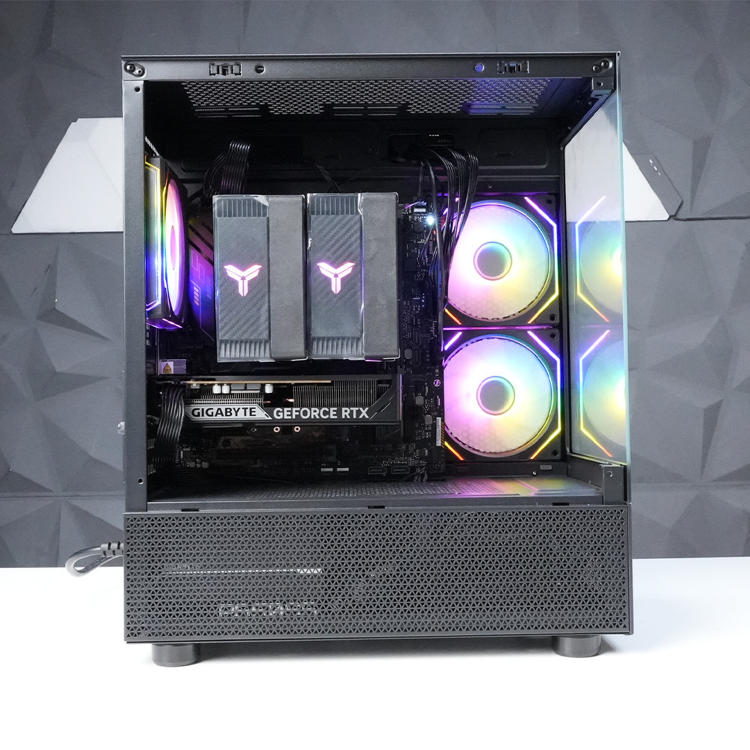 - Case được tối ưu luồng gió, tản nhiệt ARGB giúp máy mát hơn và thẩm mỹ cao.