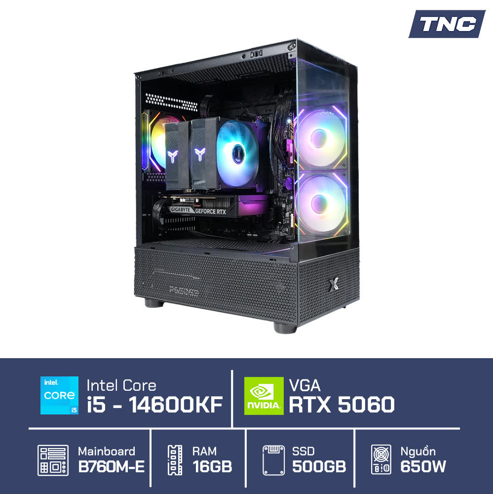 - Cấu hình cân đối giữa CPU Intel Core i5-14600KF và GPU RTX 5060 8GB, chơi mượt game Full HD/ 2K.