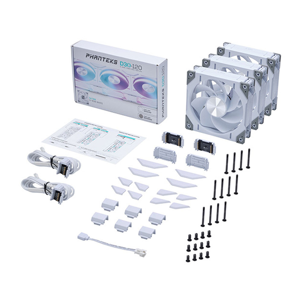 TNC Store Quạt Tản Nhiệt Phanteks D30 120mm PWM Fan Reversed DRGB White - Triple Pack