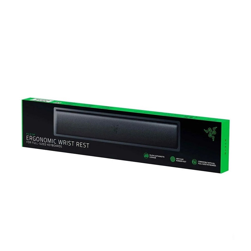 Phiên bản Full-sized của Razer Ergonomic Wrist Rest có kích thước 444.5 x 90 x 26.4 mm, vừa khít với hầu hết bàn phím cơ 104 phím phổ biến hiện nay. Với tông đen mờ sang trọng cùng logo Razer tinh tế, tấm kê tay này dễ dàng hòa hợp với bất kỳ setup nào – từ phong cách tối giản đến gaming RGB rực rỡ. Mặt dưới được thiết kế chống trượt hiệu quả, giúp sản phẩm cố định chắc chắn trên bàn, kể cả khi bạn đang “tryhard” giữa trận.
