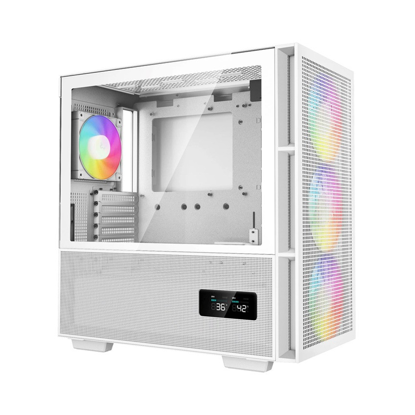Case DeepCool CH560 DIGITAL là một dòng Case mới đến từ nhà DeepCool với thiết kế LCD mặt bên hiển thị thông số nhiệt độ CPU và GPU. DeepCool CH560 DIGITAL đảm bảo rằng các linh kiện của bạn sẽ nhận được luồng khí cần thiết và đồng thời báo cáo nhiệt độ hoặc tình trạng sử dụng của CPU/GPU. Thiết kế tăng cường của bề mặt kính cửa bên cung cấp tiềm năng lưu thông không khí rộng lớn cho các CPU và GPU đời mới có công suất cao.