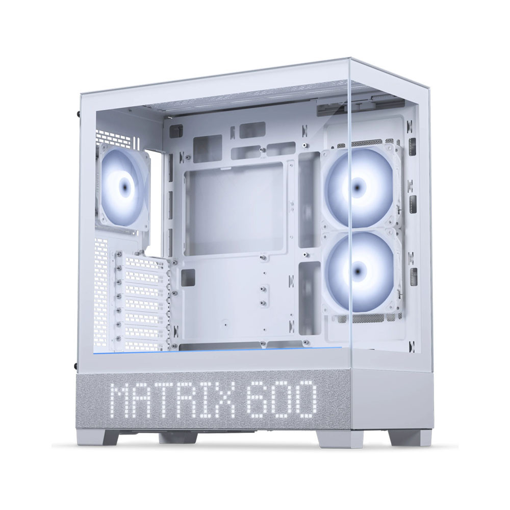 Phanteks XT View Matrix White sở hữu kích thước 454 × 228 × 588 mm, thuộc phân khúc mid-tower nhưng mang lại không gian bên trong khá rộng rãi. Thiết kế tổng thể kết hợp giữa khung thép chắc chắn, panel nhôm cao cấp và mặt kính cường lực, giúp tăng độ bền cũng như tính thẩm mỹ cho hệ thống.